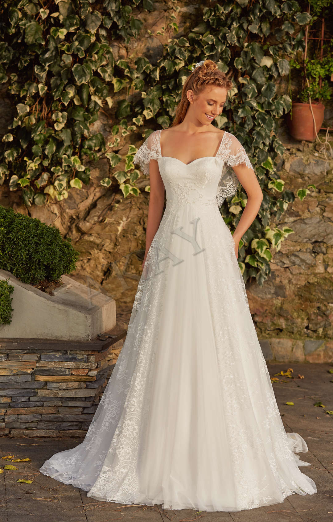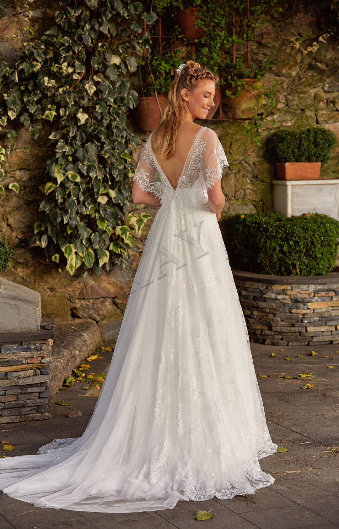 Farklı kol detayı ve naif duruşu ile sadeliği dantelin görkeminde önceleyen model gelinlik, modern tasarımın, klasiği aşan tavrını, işçiliği ile yorumluyor.