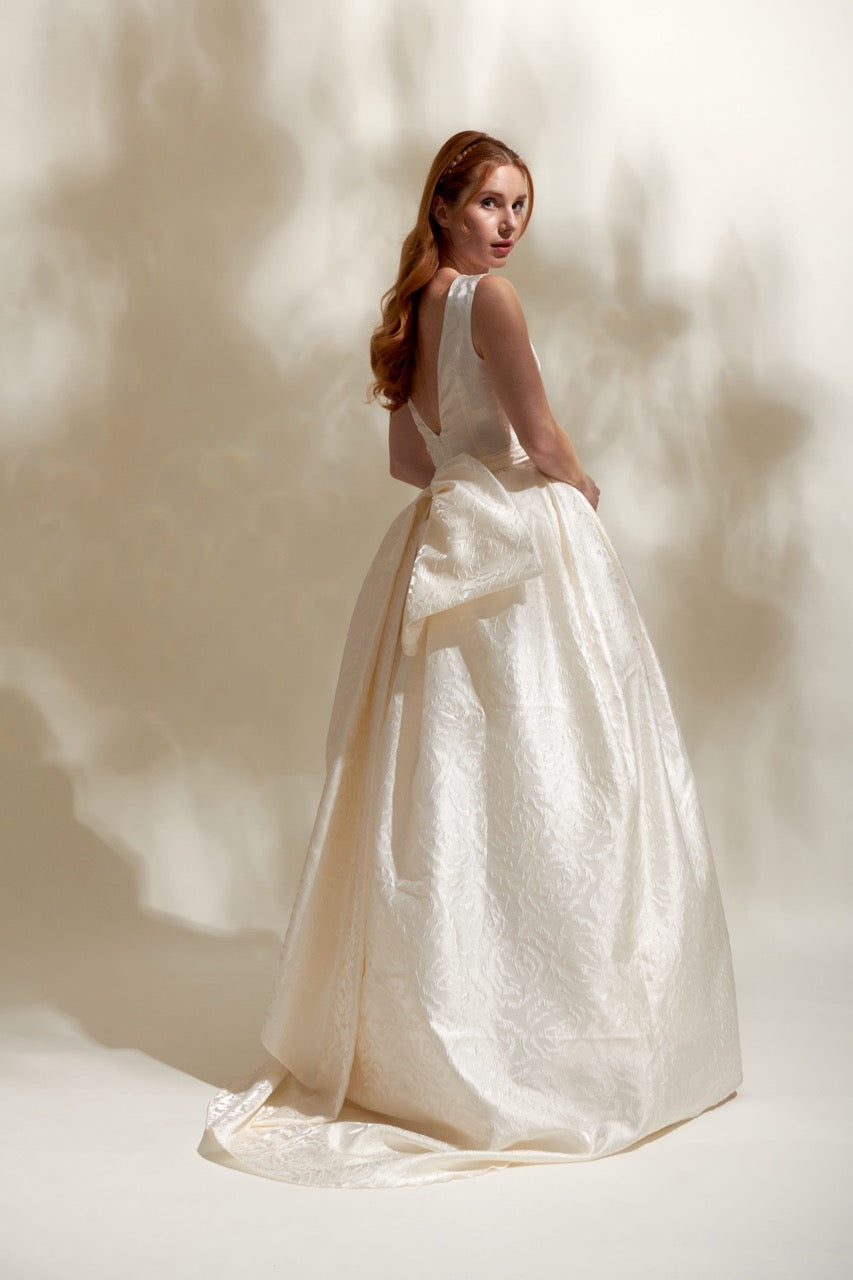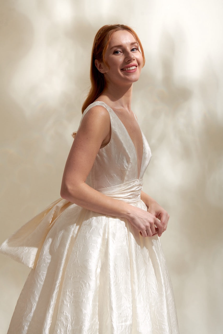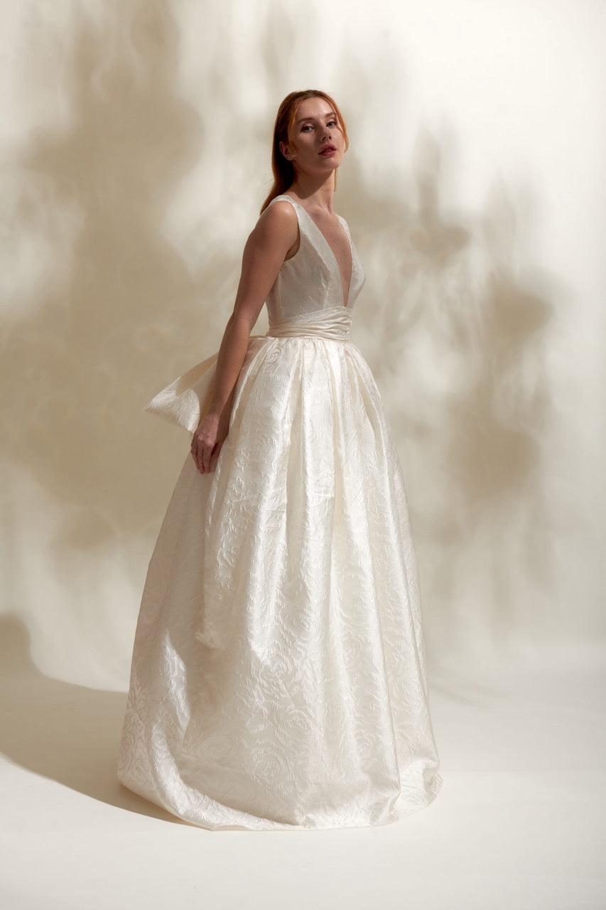 Zarif ve ihtişamlı, modern kesim ve ince dokunuşlarla ışıldayan prenses gelinlik modeli. Yalnızca AKAY Wedding House Köşkü'nde sergilenmektedir.