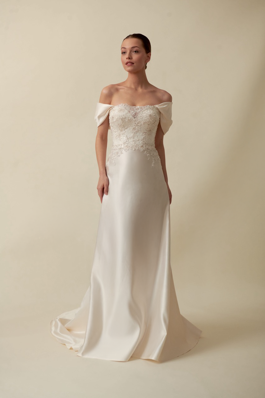 Akay düz gelinlik modeli, sade ve zarif siluetli modern gelinlik tasarımı
