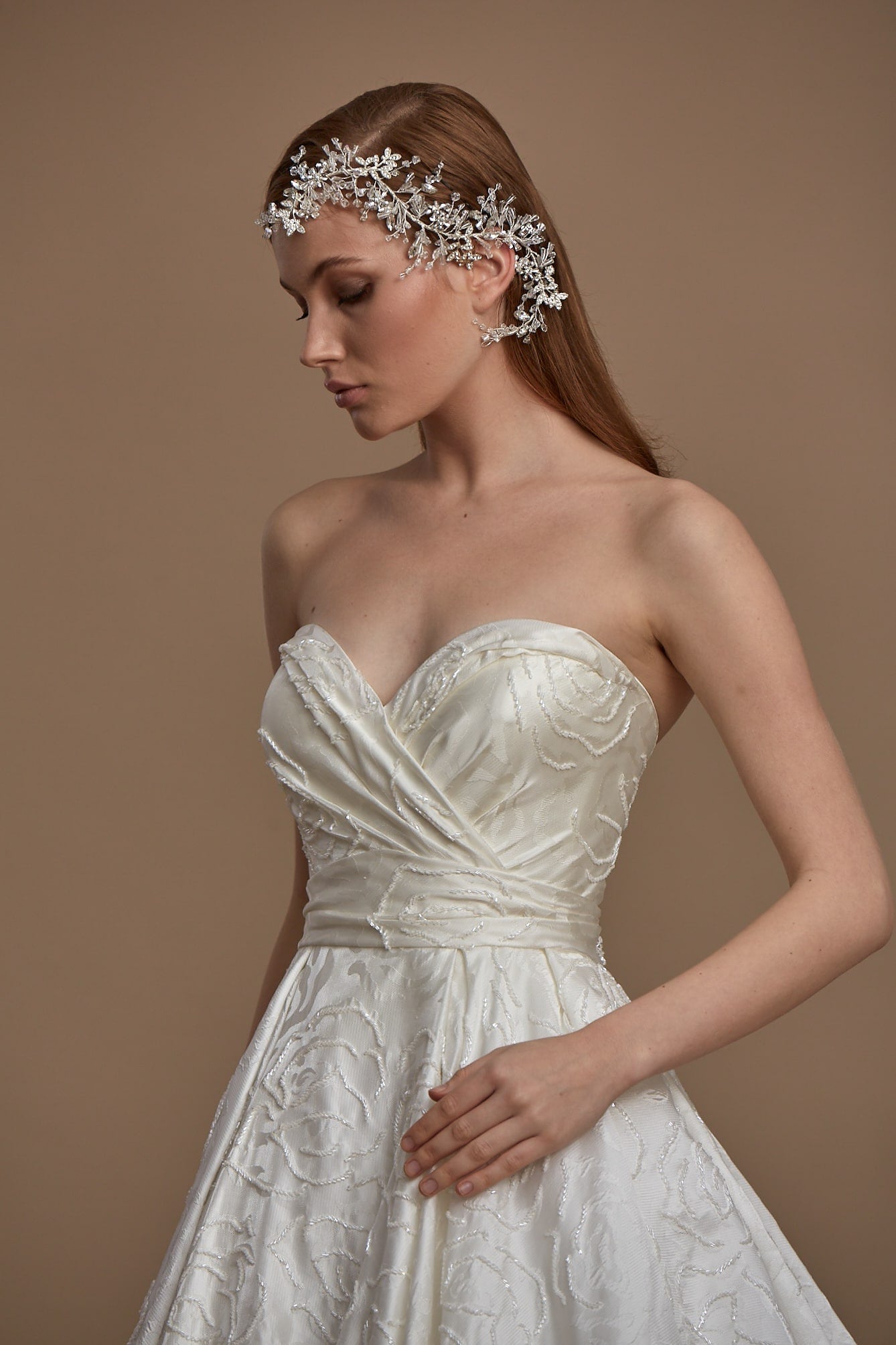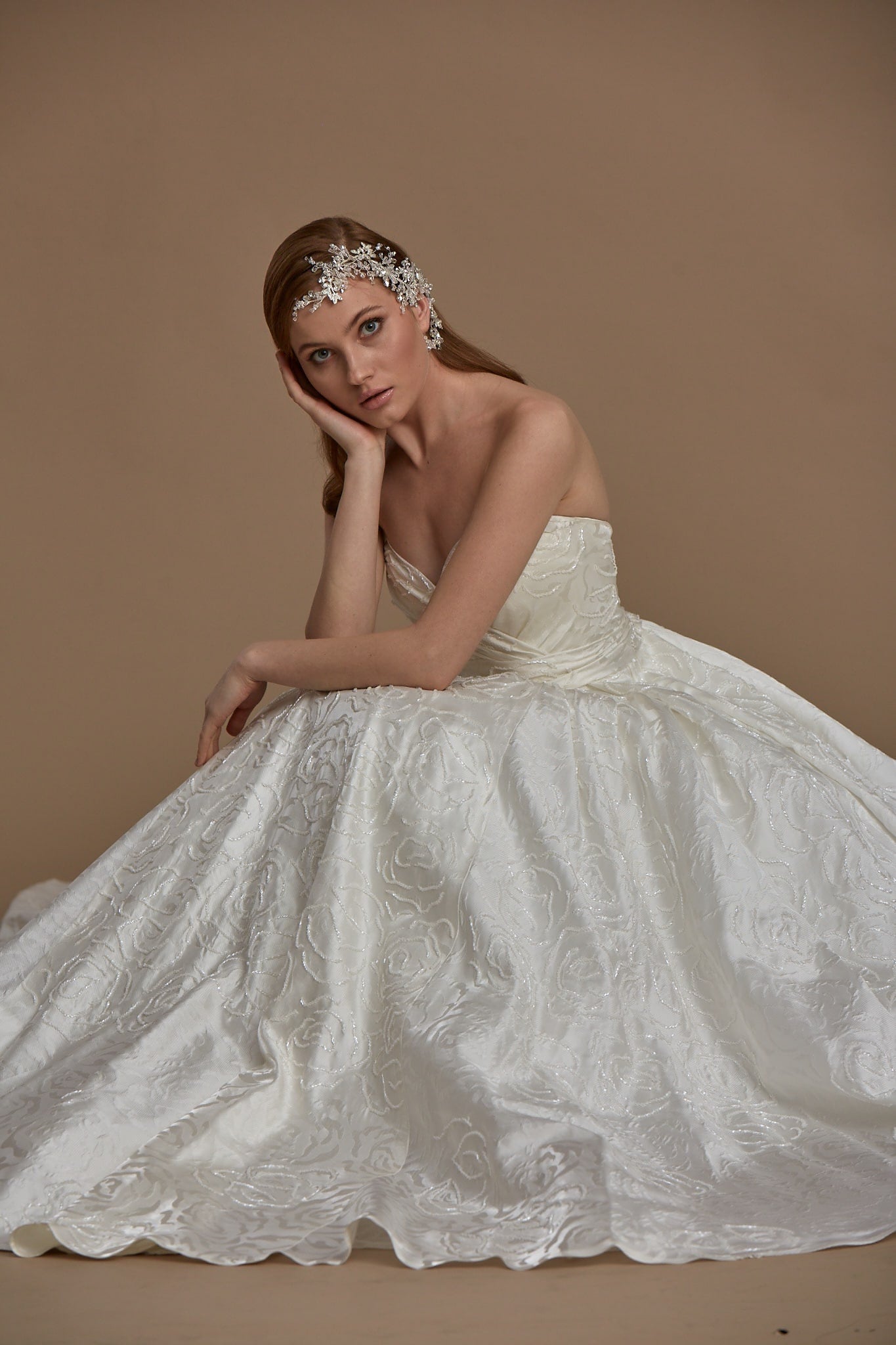An extraordinary work, striking in every detail, depicting noble beauty in the design, an elegant expression of art, literally the description of the princess wedding dress model. Wedding dress model. It is exhibited only at AKAY Wedding House.