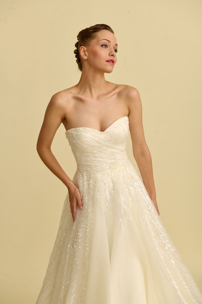 We recommend that brides visit our boutiques at least 3 months before their wedding date to order a custom-made wedding dress. Our collection models are also available ready-to-wear in our boutiques. You can try on our ready-to-wear models and pick them up the same day.