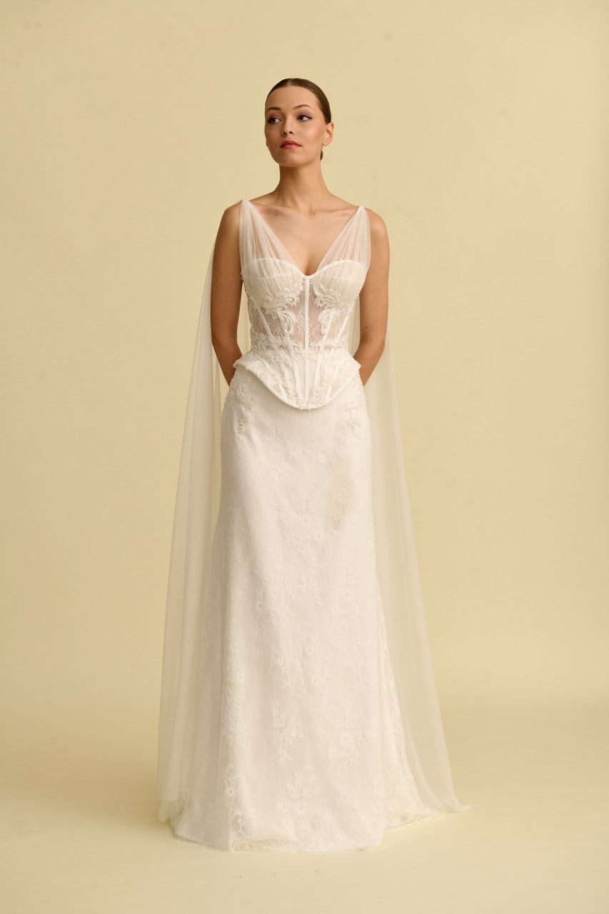 We recommend that brides visit our boutiques at least 3 months before their wedding date to order a custom-made wedding dress. Our collection models are also available ready-to-wear in our boutiques. You can try on our ready-to-wear models and pick them up the same day.